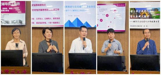 会上,数学与统计学院党委副书记、纪委书记曾振华副教授,美术学院本科生专职辅导员刘金玲,教育学部本科生专职辅导员陈燕勇副教授,外国语学院研究生辅导员唐玉福,文学院/新闻与传播学院本科生专职辅导员李逊老师分别以《“三可”辅导员的育人故事》《坚守的幸福》《以渐进式发展推进和实现辅导员事业自觉——基于个人辅导员工作的思考》《点单式、兜底式、跟进式工作模式助推辅导员工作走深走实》《三省三事十载育人,大音大象微火燎原》等为主题分享育人故事。