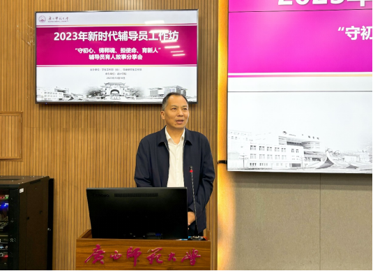 为加强新时代辅导员队伍建设,打造高素质辅导员队伍,搭建辅导员理论研究和工作实践交流平台,帮助辅导员解决工作中的实际问题,推动辅导员队伍职业化专业化发展;10月10日下午,由学生工作部(处)、党委研究生工作部主办,设计学院承办的新时代辅导员工作坊之“守初心、铸师魂、担使命、育新人”辅导员育人故事分享会在雁山纯道楼报告厅举行。校党委副书记旷永青、学工部(处)、研工部、校团委全体干部以及学校全体专兼职辅导员参加了本期工作坊。