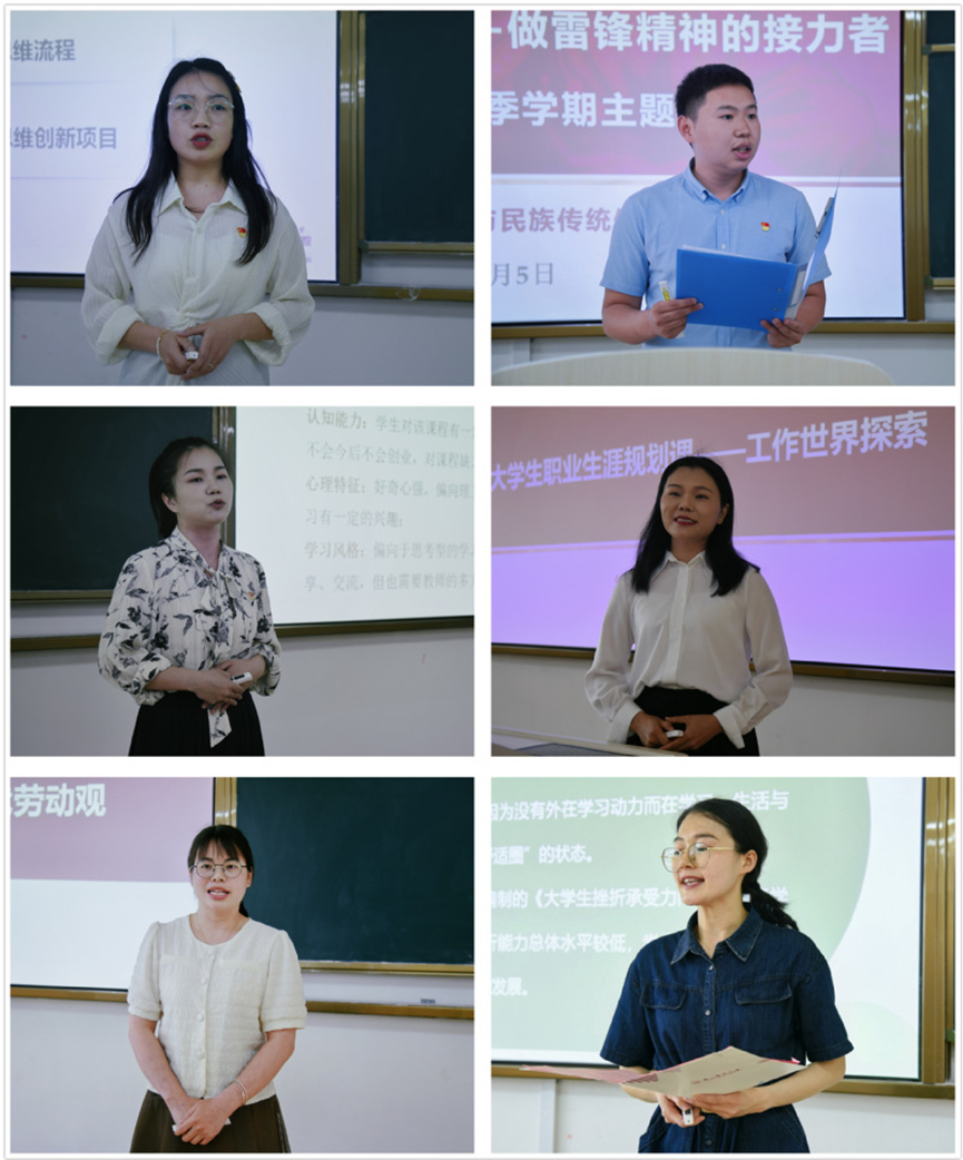 本次说课比赛共有20名辅导员参加,他们选取主题班会、大学生职业生涯规划、心理健康教育、劳动教育等课程依次展示。选手们分别从学情分析、教材选择、教学目标和教学重难点、教法学法、教学过程、教学反思等方面进行阐释,展现了良好的个人专业素养和扎实的课堂驾驭能力。