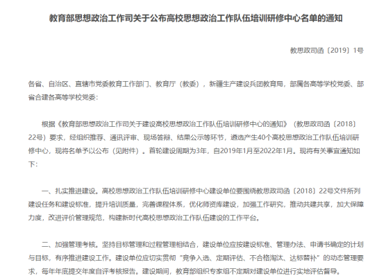 高校思想政治工作队伍培训研修中心(广西师范大学)是教育部于2019年1月批准成立的首批40个教育部高校思想政治工作队伍培训研修中心之一。该中心以建设一支“政治强、业务精、纪律严、作风正”的高校思政工作队伍服务为目标,以“增强职业认同、拓展专业知识、提升职业技能、展现团队风采”为理念,致力在2006年设立于我校的广西高校辅导员培训和研修基地、2007年设立于我校的教育部高校辅导员研修和培训基地的基础上加强建设,力争成为全国重要的高校思想政治队伍培训研修、理论教育、实践探索、政策咨询的基地和平台。