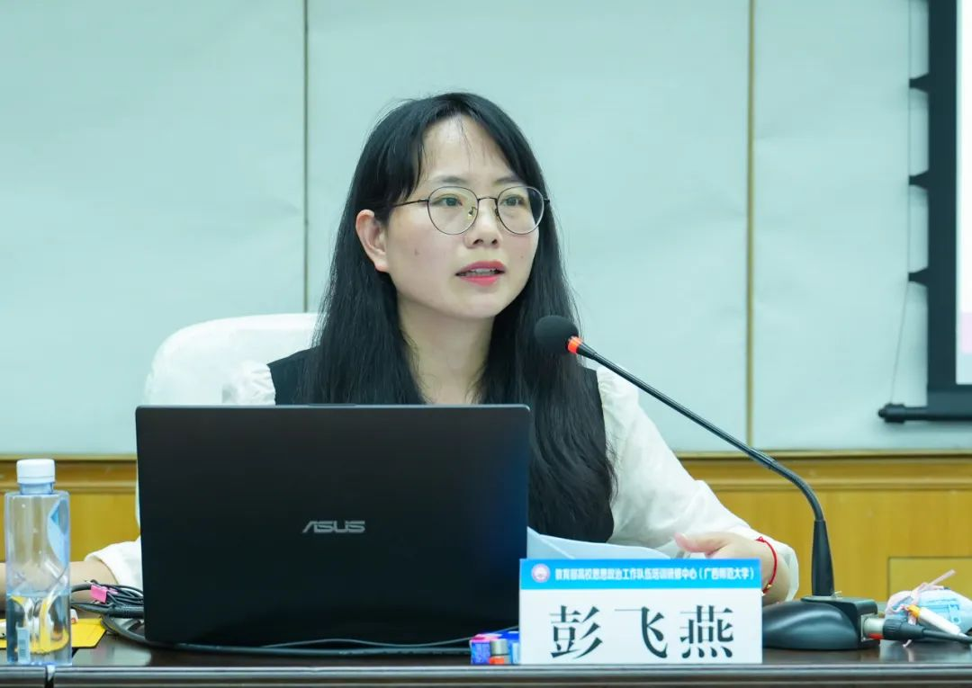 我校学生工作部(处)副部(处)长、教育部高校思想政治工作队伍培训研修中心(广西师范大学)办公室副主任蒋潇潇讲话