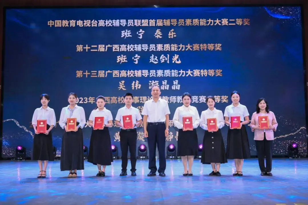 现场颁发全国第十五届“高校辅导员年度人物提名”等10个奖项,并为第一批广西高水平辅导员工作室等3个区级工作室、12个校级工作室授牌,充分发挥典型示范作用,进一步增强学生工作队伍的荣誉感、归属感和使命感。