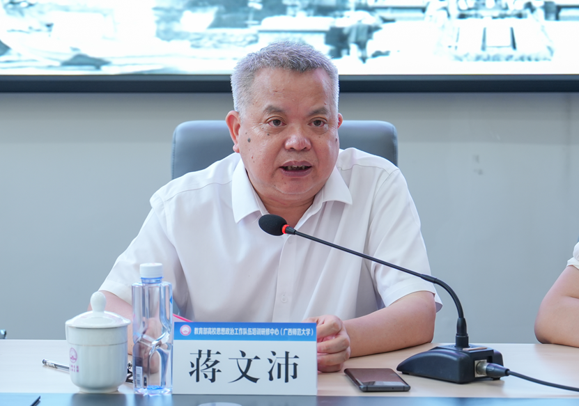 广西水利电力职业技术学院副校长蒋文沛进行了动员讲话,他首先代表学校对培训班辛勤付出的广西师范大学学生工作部(处)的老师们表示衷心感谢,同时也对学员们如何利用本次培训班充电学习提出了三点意见:一要心中有责,热爱立德树人的“良心活”;二要手上有招,争当思政工作的“技术流”;三要以学践行,善做青年成长的“领路人”。