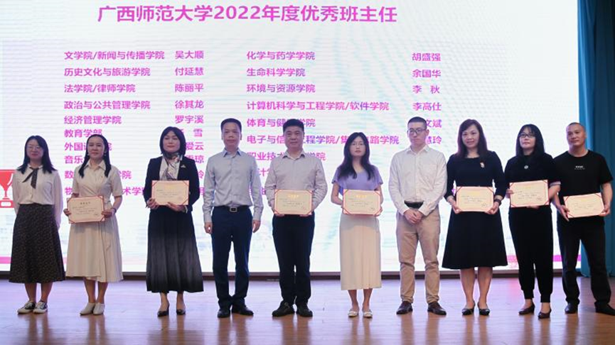 5月5日,我校2023年辅导员素质能力提升培训暨辅导员素质能力大赛在田家炳教育书院一楼报告厅正式启动。校领导贺祖斌、旷永青、莫坷分别作专题报告。校党委副书记旷永青,校党委常委、组织部部长林国庆及校团委、人事处负责人为获评学校2022年度辅导员年度人物、优秀本科生班主任和优秀兼职辅导员的的师生颁发荣誉证书。