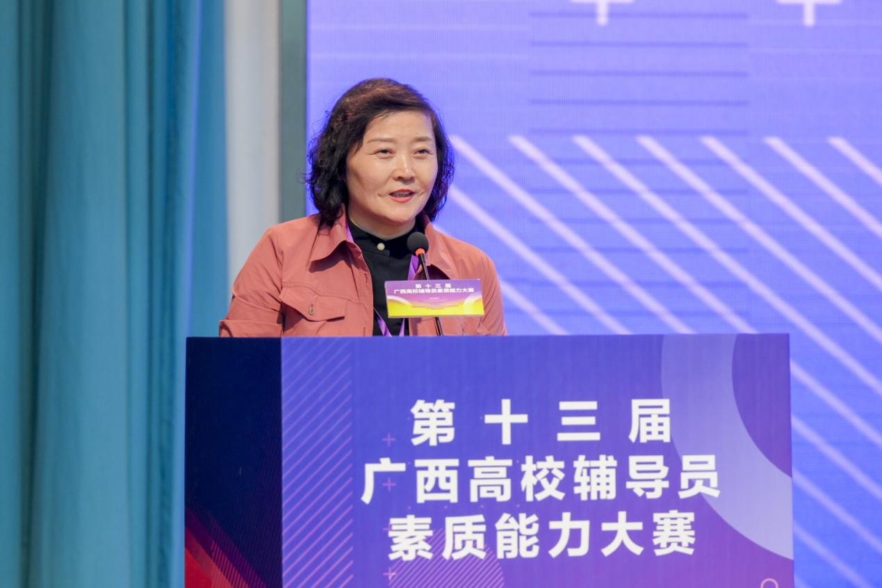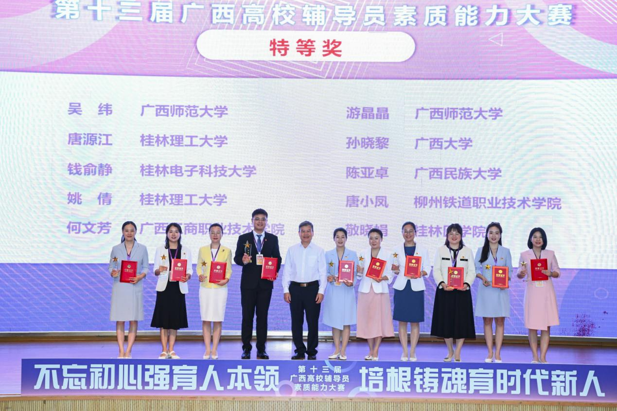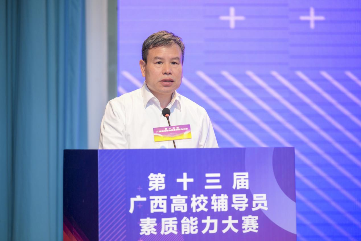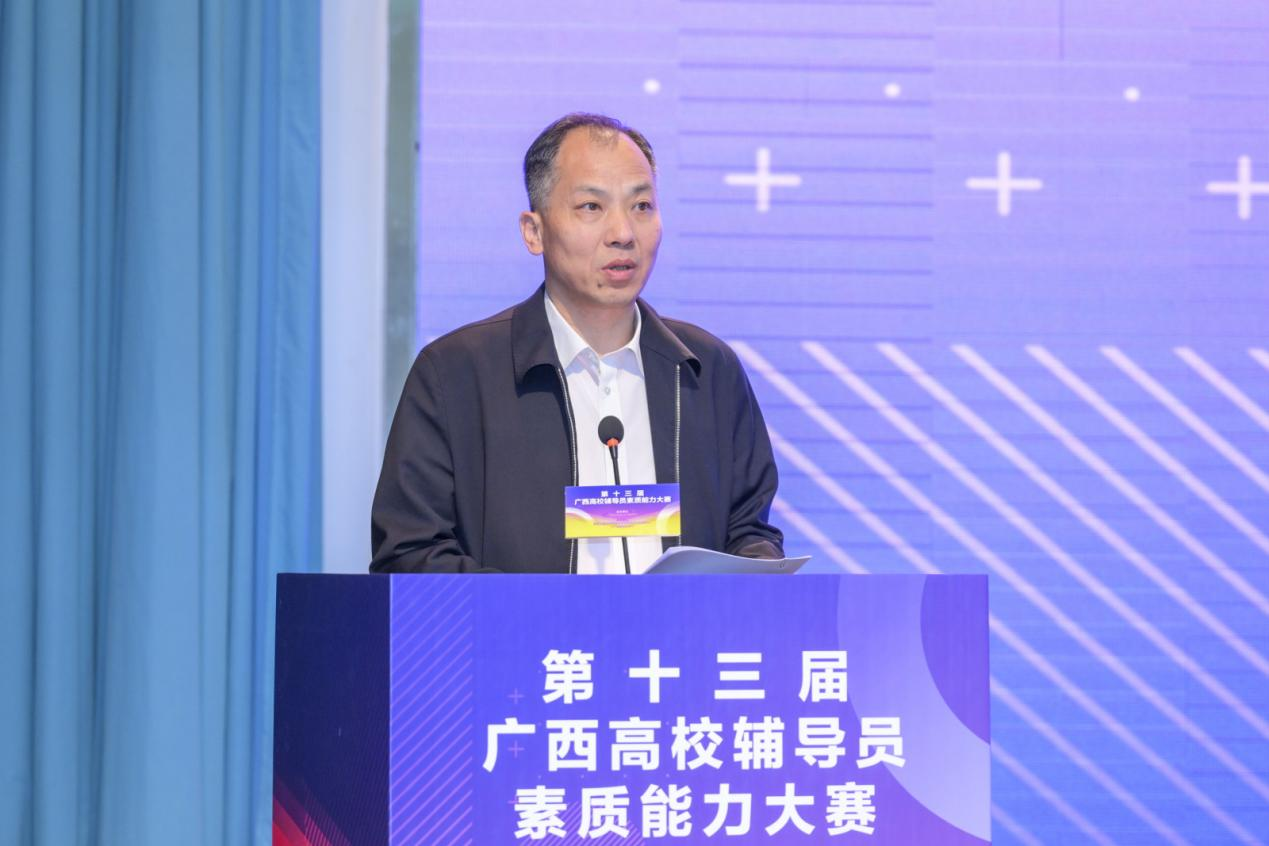 4月18日至20日,由广西壮族自治区教育厅主办,教育部高校思想政治工作队伍培训研修中心(广西师范大学)承办的第十三届广西高校辅导员素质能力大赛在我校顺利举行。4月20日下午,自治区党委教育工委宣传部部长、教育厅思政处处长、二级巡视员赵益真参加颁奖仪式并致辞,我校党委副书记旷永青参加颁奖仪式并宣读获奖选手名单。来自全区79所高校的108名辅导员参加了比赛,吸引了300余名辅导员现场观摩学习,参赛人数和观摩人员规模均创历史新高。